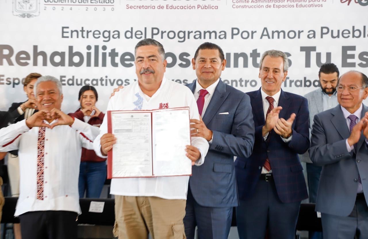 CIUDAD DE PUEBLA, Pue.- El gobernador Alejandro Armenta encabezó en el Centro Escolar Gustavo Díaz Ordaz la entrega de apoyos del programa “Por Amor a Puebla: ¡Rehabilitemos Juntos tu Escuela!”, una estrategia que impulsa mejoras directas en la infraestructura educativa, en colaboración con comunidades escolares, que incluyen al Instituto Politécnico Nacional (IPN) y la Benemérita […]