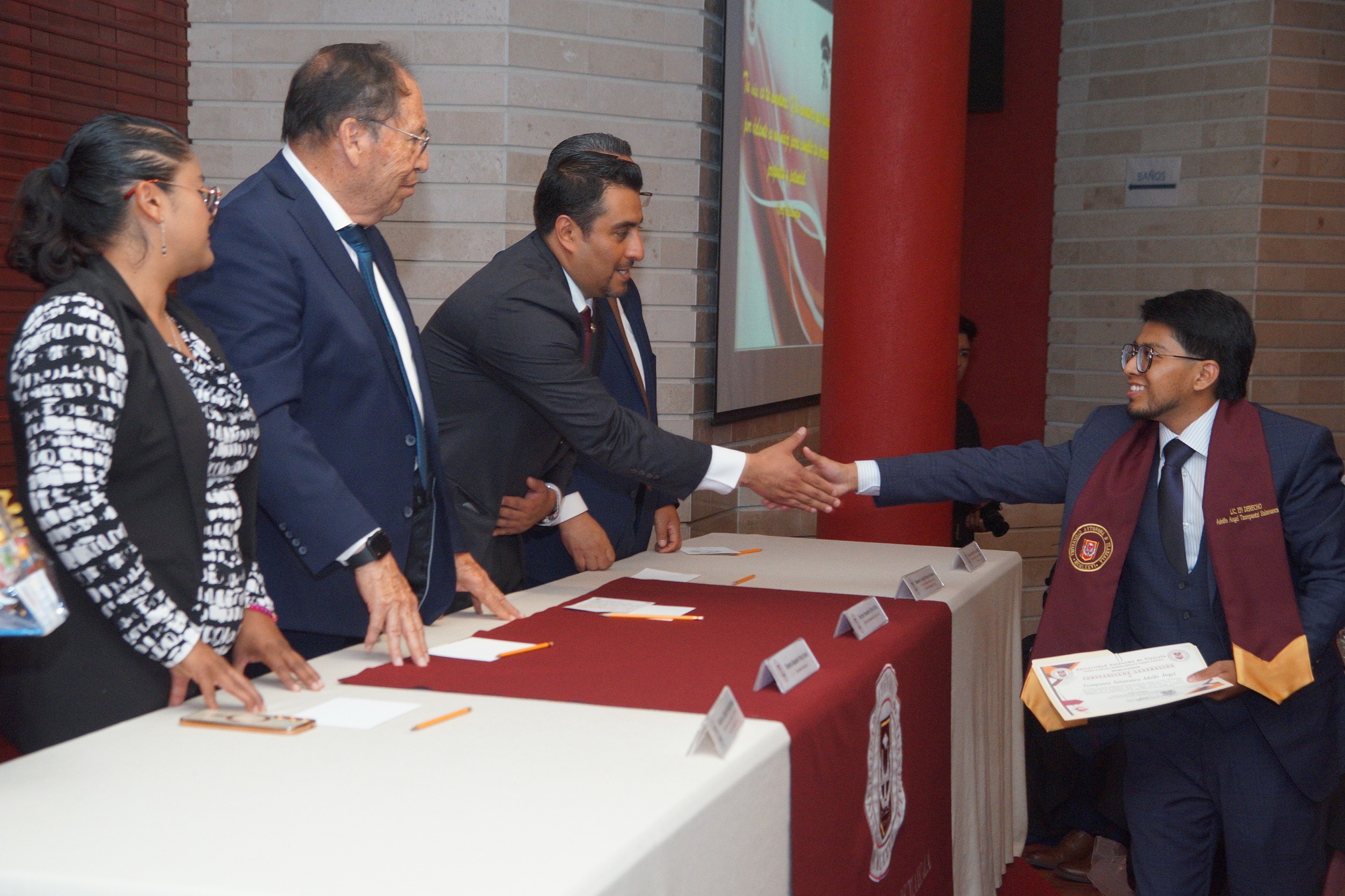 Aquí, enfatizó que en la Autónoma de Tlaxcala se forman a jóvenes con valores y aptitudes que les permiten solventar problemáticas vinculadas a la defensa y protección de la dignidad de las personas, siendo este el propósito del Derecho, ya que nadie puede ser tratado de manera diferente por su condición, raza o credo, y el oficio de un abogado es proteger a la sociedad a través del Derecho.