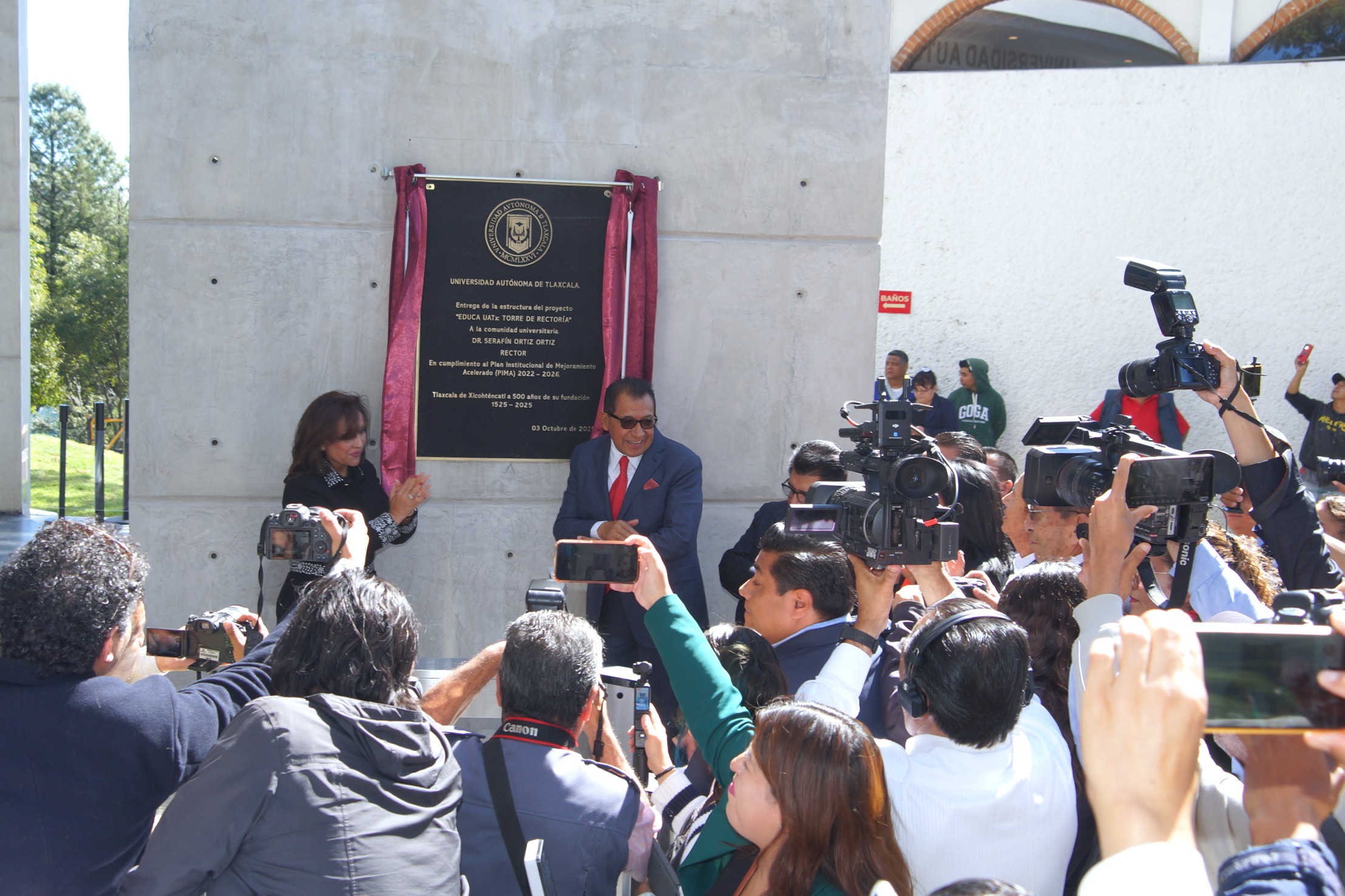 El Doctor Serafín Ortiz Ortiz, Rector de la Universidad Autónoma de Tlaxcala (UATx), entregó la estructura del Proyecto Educa UATx: Torre de Rectoría a la comunidad universitaria, con la presencia de la Licenciada Lorena Cuéllar Cisneros, Gobernadora del Estado de Tlaxcala, exrectores, invitados especiales y docentes y estudiantes, en ceremonia que tuvo lugar en el Auditorio Semifijo de «Educación Inicial», ubicado en la planta baja de la Torre de Rectoría, en el marco de los 500 años de la Fundación de la Ciudad de Tlaxcala.