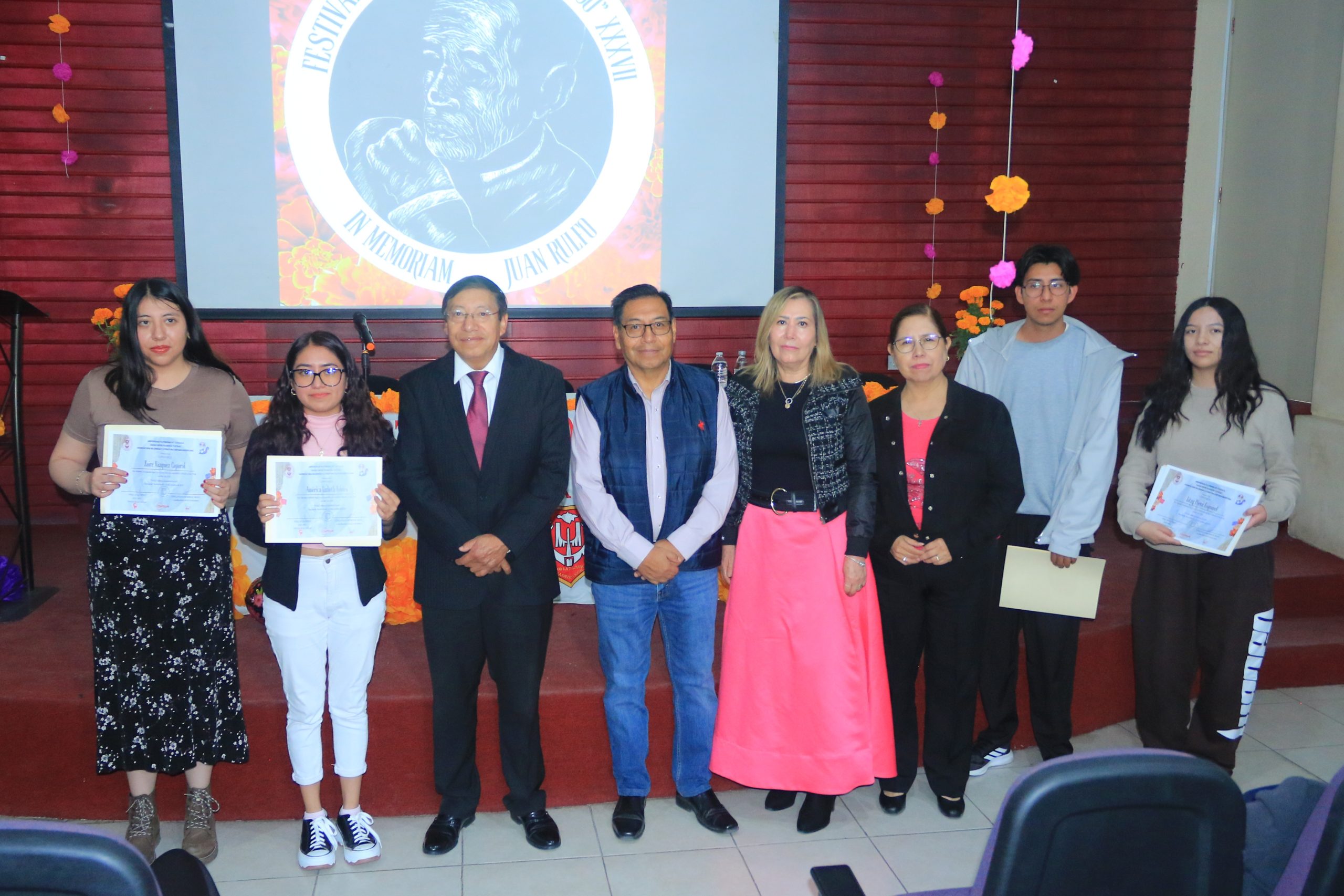De igual forma, en esta jornada, estudiantes ganadores del concurso de calaveritas del Festival recibieron sus respectivos premios en reconocimiento a su creatividad y conocimiento. Los trabajos fueron evaluados por los escritores Enrique Chávez y David Olivares.