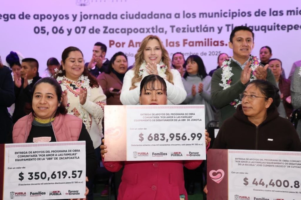 En este contexto, en las microrregiones de Teziutlán, Tlatlauquitepec y Zacapoaxtla se entregaron 609 aparatos rehabilitatorios y ayudas funcionales, mil 200 despensas, raciones de alimentos para desayunos escolares en su modalidad caliente y fría; así como obra comunitaria para equipar desayunadores, estancias de día, Unidad Básica de Rehabilitación (UBR), reequipar instituciones educativas que se encuentran en migración y Centros de Capacitación y Desarrollo.