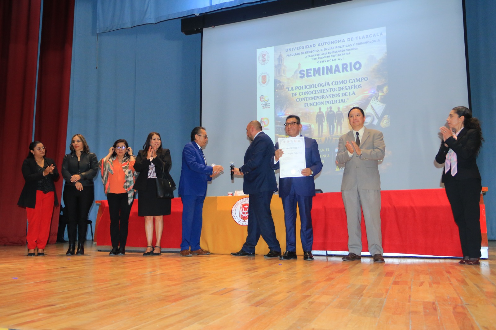 Durante el desarrollo del Seminario 𝐋𝐚 𝐏𝐨𝐥𝐢𝐜𝐢𝐨𝐥𝐨𝐠𝐢́𝐚 𝐜𝐨𝐦𝐨 𝐜𝐚𝐦𝐩𝐨 𝐝𝐞 𝐜𝐨𝐧𝐨𝐜𝐢𝐦𝐢𝐞𝐧𝐭𝐨: 𝐝𝐞𝐬𝐚𝐟𝐢́𝐨𝐬 𝐜𝐨𝐧𝐭𝐞𝐦𝐩𝐨𝐫𝐚́𝐧𝐞𝐨𝐬 𝐝𝐞 𝐥𝐚 𝐟𝐮𝐧𝐜𝐢𝐨́𝐧 𝐩𝐨𝐥𝐢𝐜𝐢𝐚𝐥, que organizó la Facultad de Derecho, Ciencias Políticas y Criminología de la Universidad Autónoma de Tlaxcala (FDCPyC-UATx), el Rector, Doctor Serafín Ortiz Ortiz, aseguró que la función policial tiene como eje fundamental la protección de los derechos humanos de las y los ciudadanos.