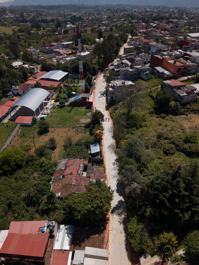 Esta importante calle brinda acceso al preescolar y la primaria, e incluye banquetas que mejoran la movilidad y la seguridad peatonal. Además, se convierte en un nuevo espacio para la comunidad, garantizando un tránsito seguro de día y de noche gracias a su iluminación.